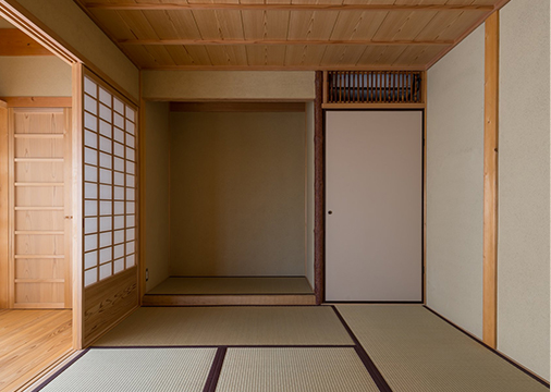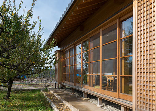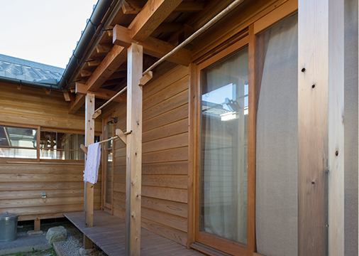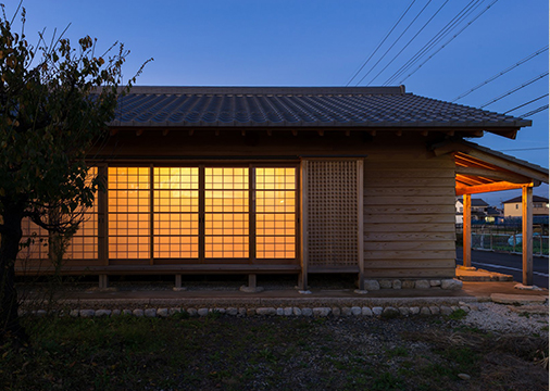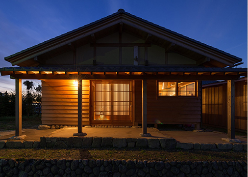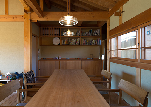竣工:2014年9月 構造規模:木造伝統構法・平屋 延べ面積:住宅 107.42㎡ 車庫 46.82㎡ 施工:(有)梓工務店